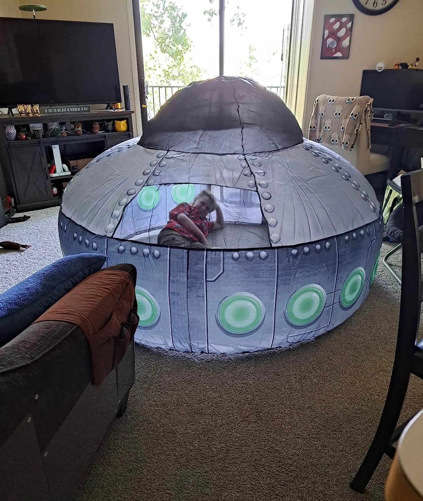 ”This is just the coolest thing! I remember using all the blankets and chairs in the house to build a fort as a kid but now just the fort and a fan and my grandson and I have hours of fun playing!”