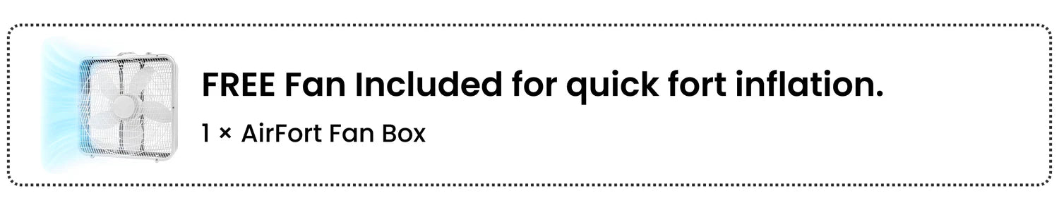 It’s as easy as 1, 2, 3! Each AirFort comes with a set of Velcro and all you have to do is attach the Velcro strips, turn the fan on, and watch your AirFort come to life, transforming any space in less than 30 seconds.